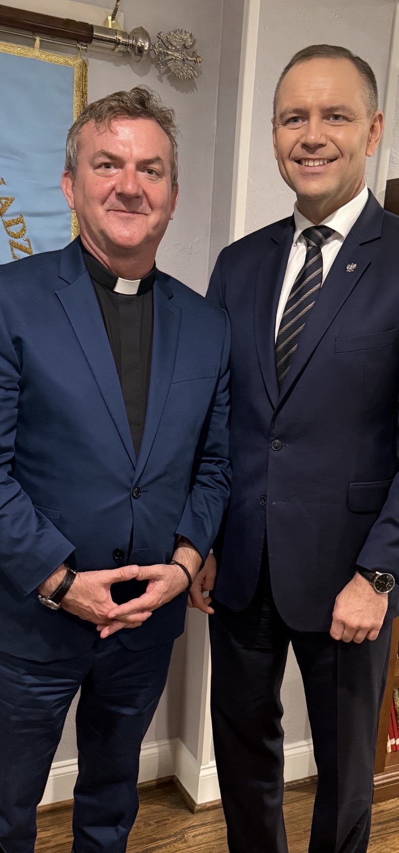 Po południu, podczas spotkania z Polonią z Dallas w Hall of State, Pan Prezydent odznaczył naszego Proboszcza, ks. Jacka Wesołowskiego SChr, Srebrnym Krzyżem Zasługi Rzeczypospolitej Polskiej. Prezydent wspomniał o głębokiej, wspólnej historii, która od 250 lat łączy Stany Zjednoczone i Polskę. Podkreślił również zakorzenioną przyjaźń między USA a Polską, zachęcając jednocześnie do dalszego pielęgnowania wzajemnego szacunku pomiędzy obu narodami.
